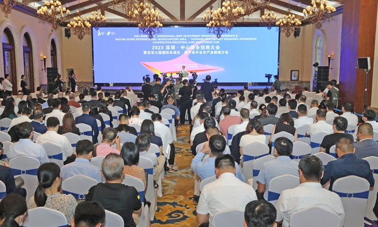 今年6月,宝安区举办2023深圳·中山联合招商大会暨宝安九围国际总部区·翠亨深中合作产业园推介会。(资料图片)