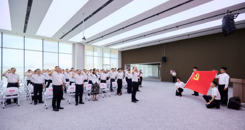 活动伊始,全体党员重温入党誓词,誓言铮铮,初心如磐,激励着全体党员传承红色薪火、汲取奋进力量。紧接着,大家走进燕罗智能网联汽车产业园,感受发展“革新”。这里是深圳“工业上楼”的首批试点项目,在今年4月18日盛大开园。通过参访园区、观看宣传片等,集团上下百余名干部职工仿佛走进一座充满科技魅力的“超级工厂”,共同感受园区的发展历程、无限潜力以及深圳新质生产力的蓬勃发展。