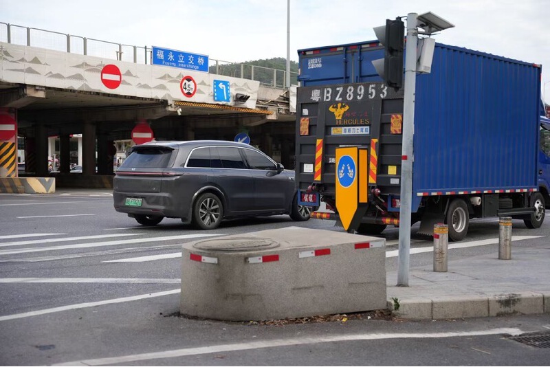 原来,深圳市乾行达科技有限公司的工程师们,早在2021年就在宝安设计了全球首款缓冲吸能型安全岛岛头并率先应用。8月20日下午,记者跟随该企业宝安高层次人才、高级工程师周保君团队来到了107国道深圳永福医院段掉头路口,看到了应用在宝安的多个缓冲吸能型安全岛。